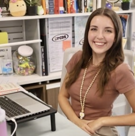After graduating from PCDS, Ms. Hott went to Emory University in Atlanta, Georgia, for her first year of college. However, due to restrictions during the pandemic, she came back closer to home, to ASU, for a more authentic college experience. She says, “I wasn’t sure if I would like it or not, but I really did end up loving it. I just tried to join every club that remotely interested me, and it’s easier than you would think, to make a really big community feel a lot smaller. And then I did my master’s there too, because I liked it so much.”